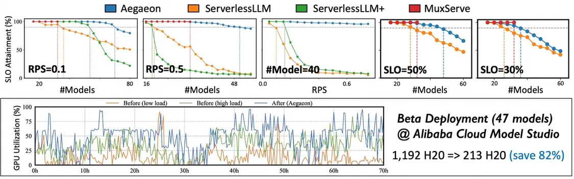 在阿里云模型市场进行的为期超过三个月的 beta 测试中,aegaeon 系统展现了卓越的效能。测试数据显示,服务数十个参数量高达 720 亿的大模型,所需的英伟达 h20 gpu 数量从 1192 个成功减少至 213 个,数量削减高达 82%。