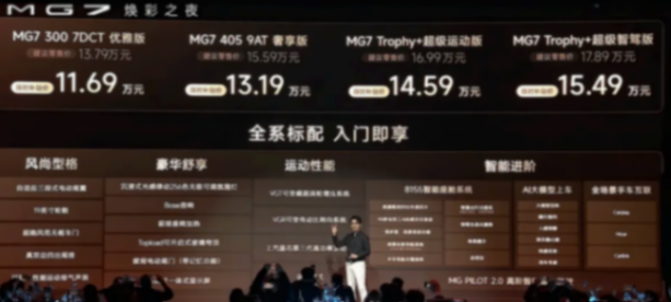 1月6日,新款名爵mg7正式上市了,新车共推出四款车型,售价区间为13.79-17.89万元,限时补贴价为11.69-15.49万元。这个价格下标配了自适应三段式电动尾翼、无框车门、双边四出排气、运动声浪等配置,而且1.5t、2.0t两个动力也足够强劲,这对于很多喜欢燃油运动车的年轻朋友来说无疑颇具吸引力。那么新车四款车型的配置如何,又该怎么选呢?今天就来和大家聊聊这个话题。
