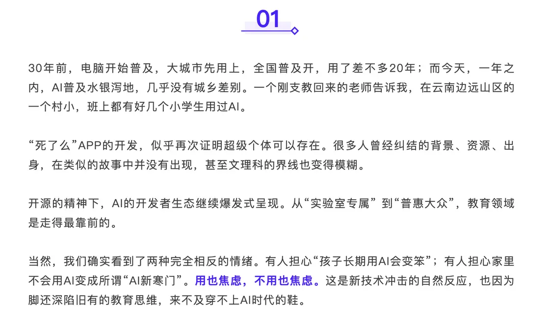 文章指出,ai技术的普及速度远快于个人电脑等过往技术,城乡间的接入差距正在缩小。例如,有支教教师反馈,在云南边远山区的村小,已有学生使用过ai工具。同时,开源生态的发展降低了技术使用门槛,使得ai教育应用更易惠及大众。